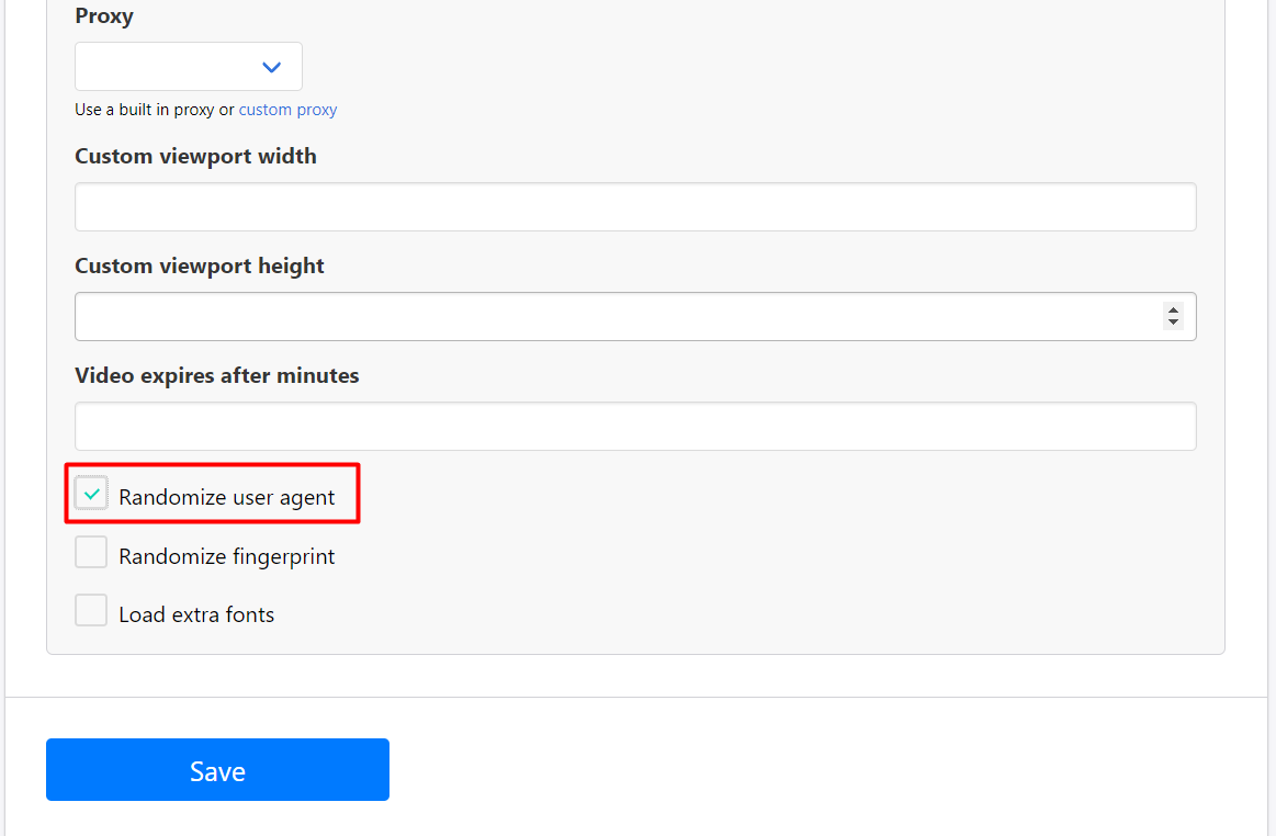 This makes Browserbear appear a little less bot-like by changing the user agent when tasked to access a site.