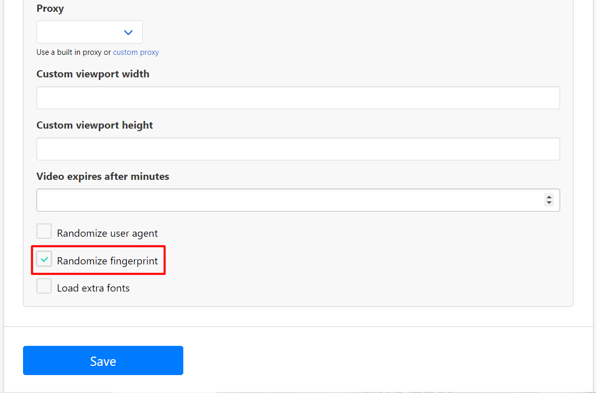This is a more aggressive option that changes multiple browser attributes, which includes randomizing the viewport size. This options is unsuitable for taking screenshots due to the randomized screen sizes.