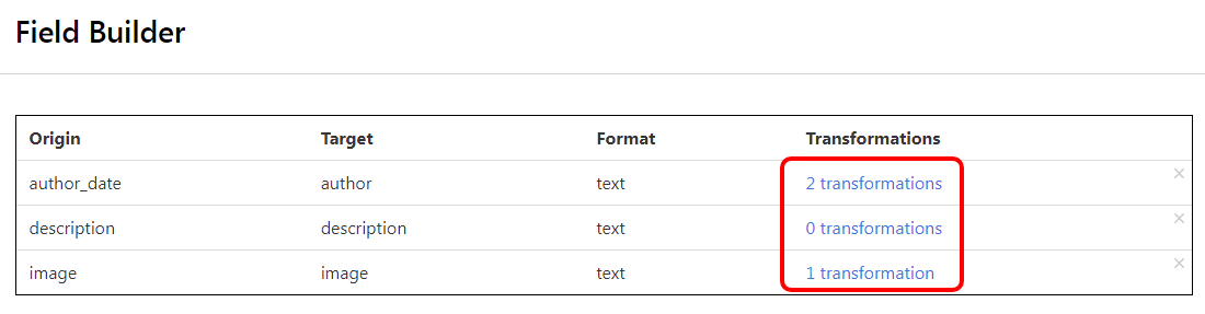 You can use the field builder to customize and transform your data to meet your expectations. If you haven't already, consider creating a JSON data feed before continuing here.