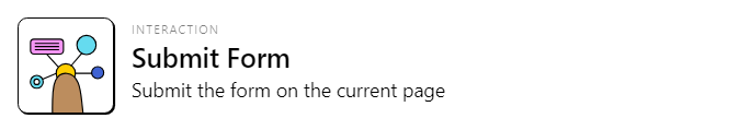How do I submit a form? The Submit form action can be used to submit a form on the current page. Add this action after you've entered all the details required by the form.