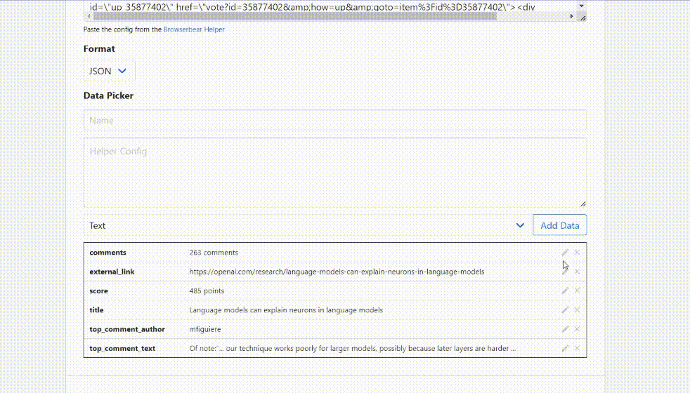 Note: You will notice that the item will be removed from the data table and it's config will be automatically pasted of their respective fields.